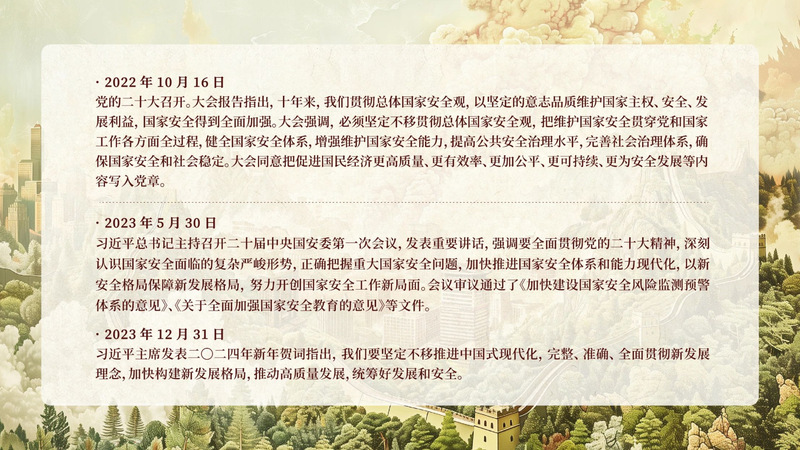 2024年4月15日是第九个全民国家安全教育日。今年的主题是:总体国家安全观·创新引领10周年。共建国家安全人人有责,维护国家安全人人可为。增强全民安全意识,保守国家秘密,践行总体国家安全观,共筑坚不可摧的人民防线!